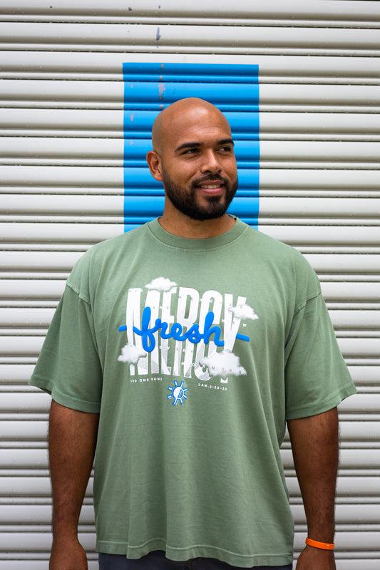 [LESS of ME / MORE of JESUS] Oversized Boxy T-shirt (Old English Edition)