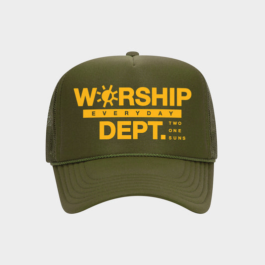 [Worship Everyday Dept.] Trucker Hat - Olive/Yellow